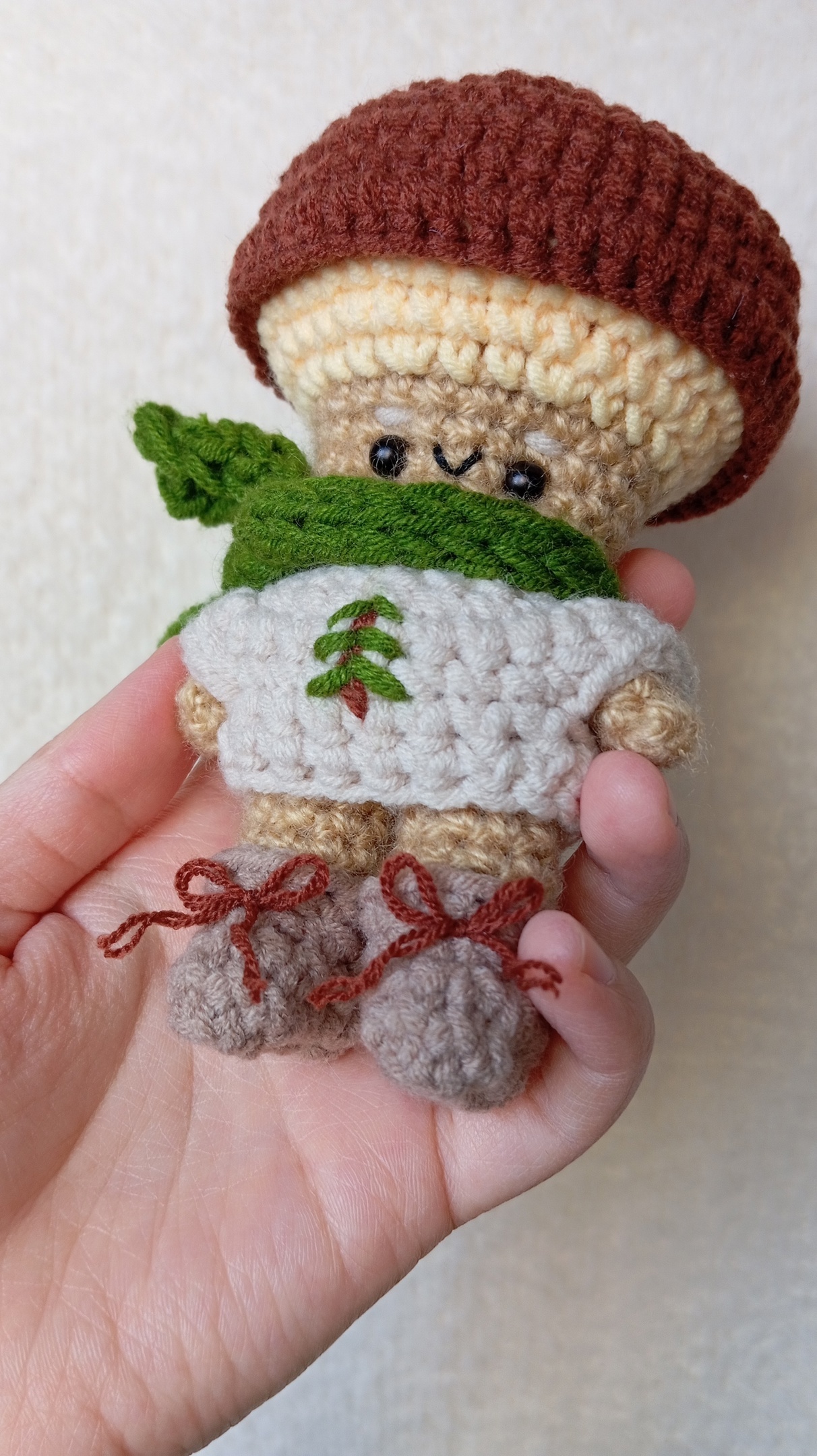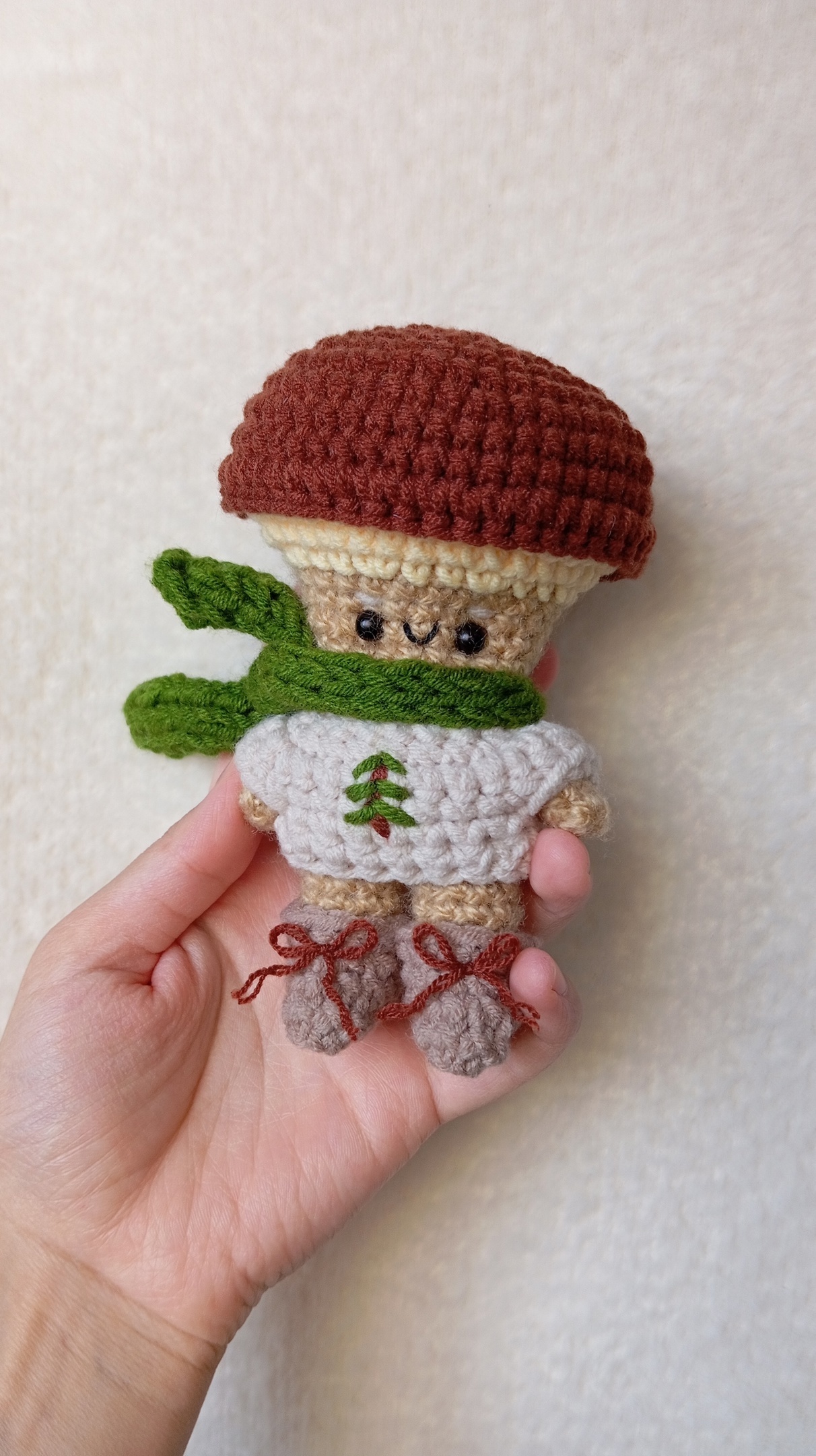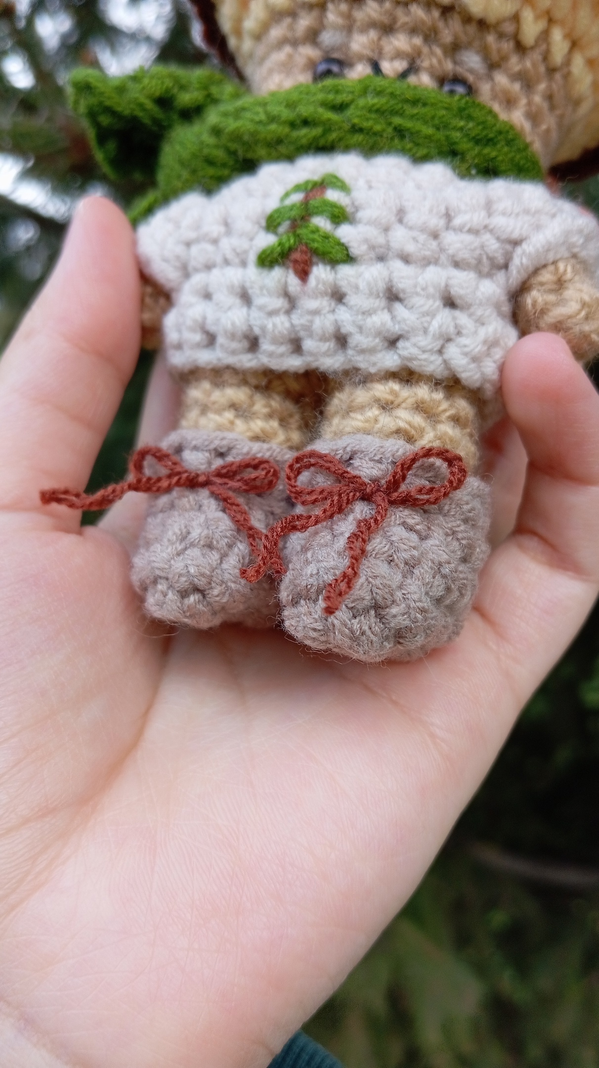 утеплился перед осенними холодами! имеет при себе свитер с елочкой, длинный шарф и даже ботиночки на шнурочках~ 🥾 вся одежка съемная, его можно переодевать :з